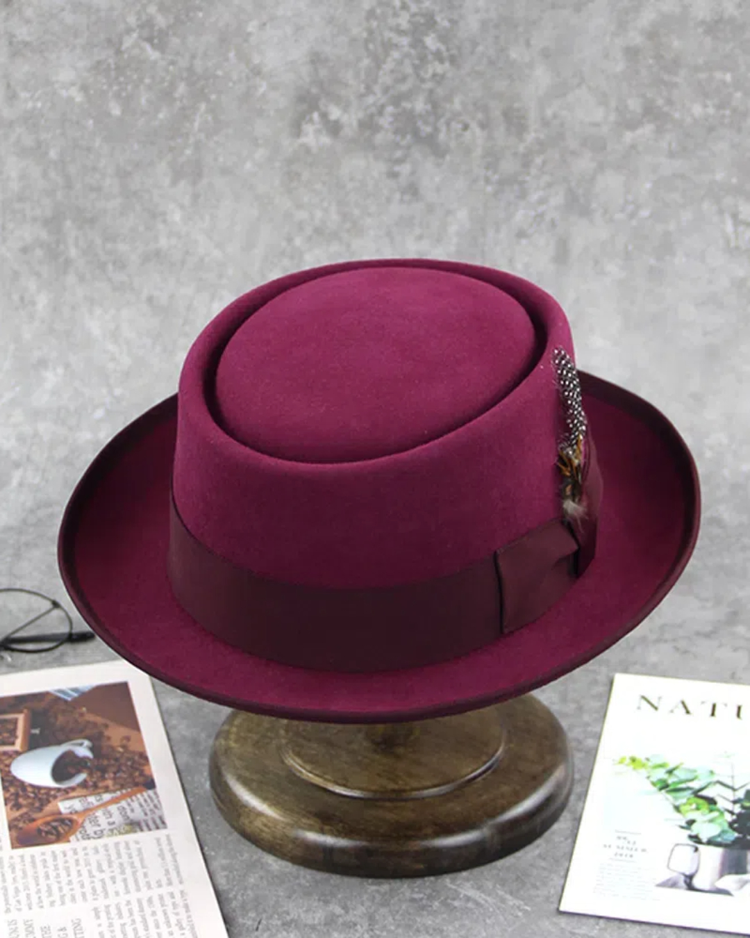 The Porkpie by Dawson is fashioned with a classic 2" telescope brim. 100% Australian wool felt construction provides a smooth and supple feel to an already value driven design. This hat is finished with a grosgrain hat band and decorative feather accent.