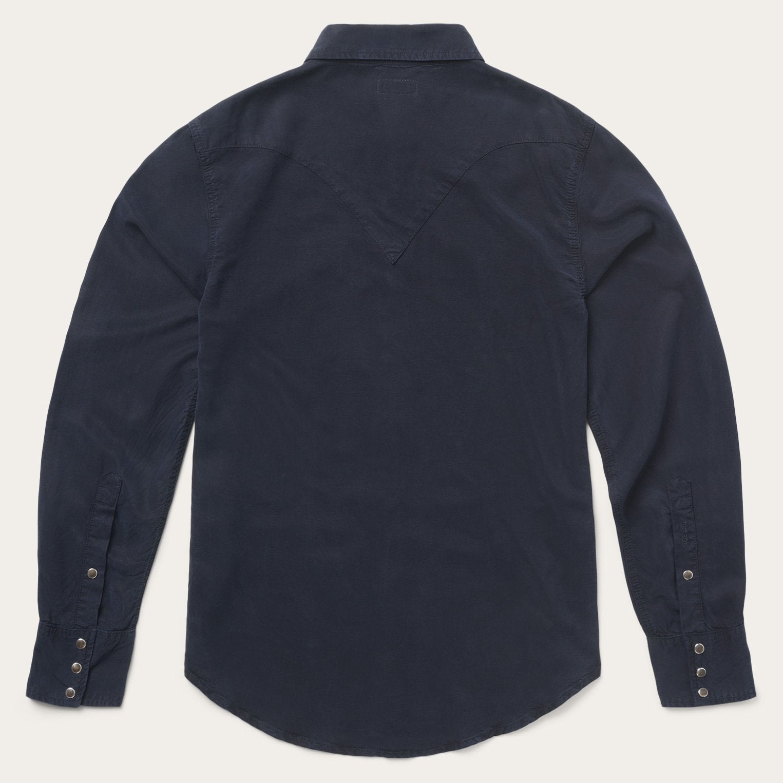 This premium Western shirt is constructed with contrast stitching and has a classic, loose cut for riding and outdoor activity. It’s made from 100% Lyocell that hangs well while keeping its shape and only gets better with age. Two snap-closure pockets, a spread collar, and a one-point curved back yoke and single point front yokes give this denim shirt the perfect dose of character.Iconic Western details include Stetson-branded snap buttons on the front placket, cuffs, and pockets, as well as custom embroidery on the chest and right cuff. Exceedingly durable and always comfortable, it’s an all-occasion essential.