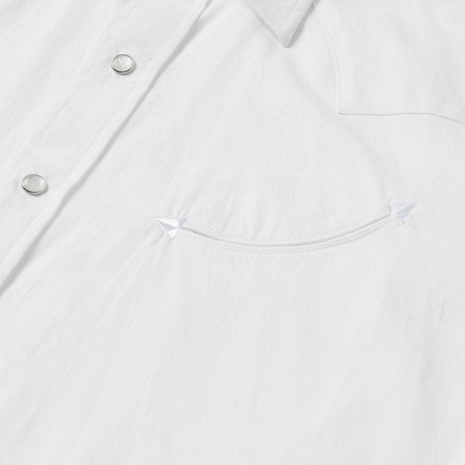 A tried-and-true Western classic in a loose cut for riding and outdoor activity — this is the kind of resilient and dependable shirt you’ll reach for every morning. It’s made from 100% cotton that hangs well while keeping its shape and only gets better with age. Two western smile pockets with arrow points, a spread collar, and a one-point curved front and back yoke give this button-down the perfect dose of character.Iconic Western details include Stetson-branded snap buttons on the front placket and cuffs, as well as custom embroidery on the chest and right cuff. Exceedingly durable and always comfortable, it’s an all-occasion essential.